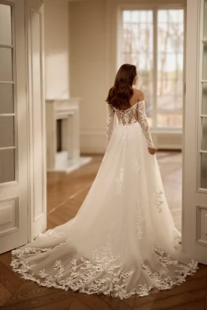 I tessuti squisitamente pregiati utilizzati nella collezione sono scelti con cura per garantire comfort e bellezza. Ogni abito è una creazione unica, realizzata con passione e maestria artigianale, linee decisamente molto romantiche, con tanti dettagli di tulle di seta e pizzi ricamati. Abiti dallo stile bucolico, ma al tempo stesso shabby chic.
